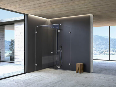 - Configurații variate – sticlă-perete sau sticlă-sticlă, unghiuri de 90°, 135° și 180°